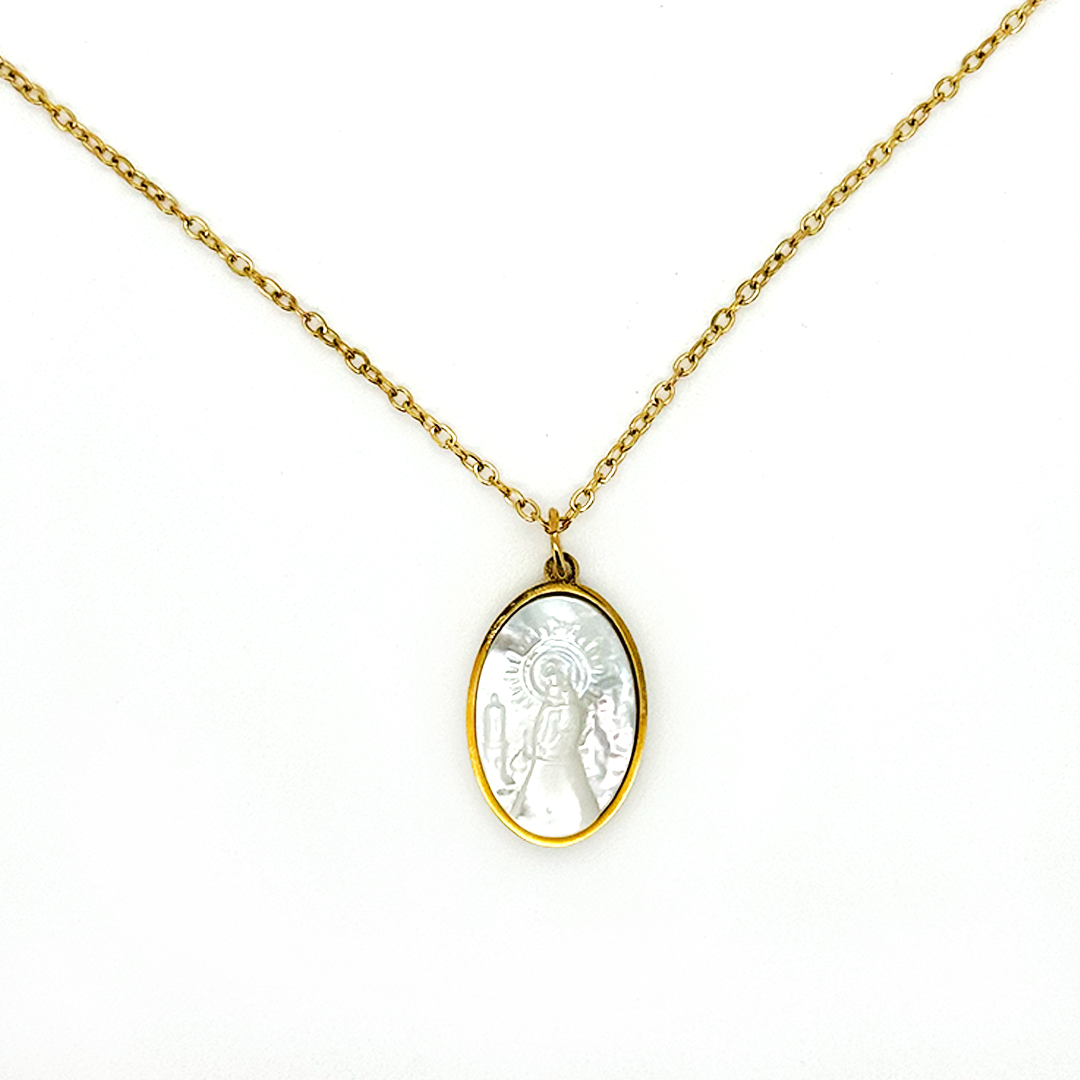 Collar Virgen Del Pilar Nácar - (Acero Quirúrgico Waterproof)