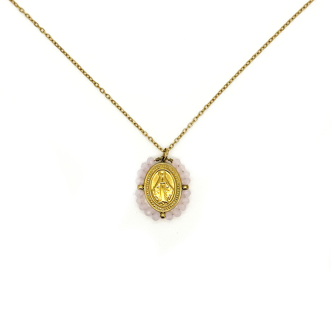 Collar de la Virgen Milagrosa 2cm de acero quirúrgico inoxidable y waterproof.